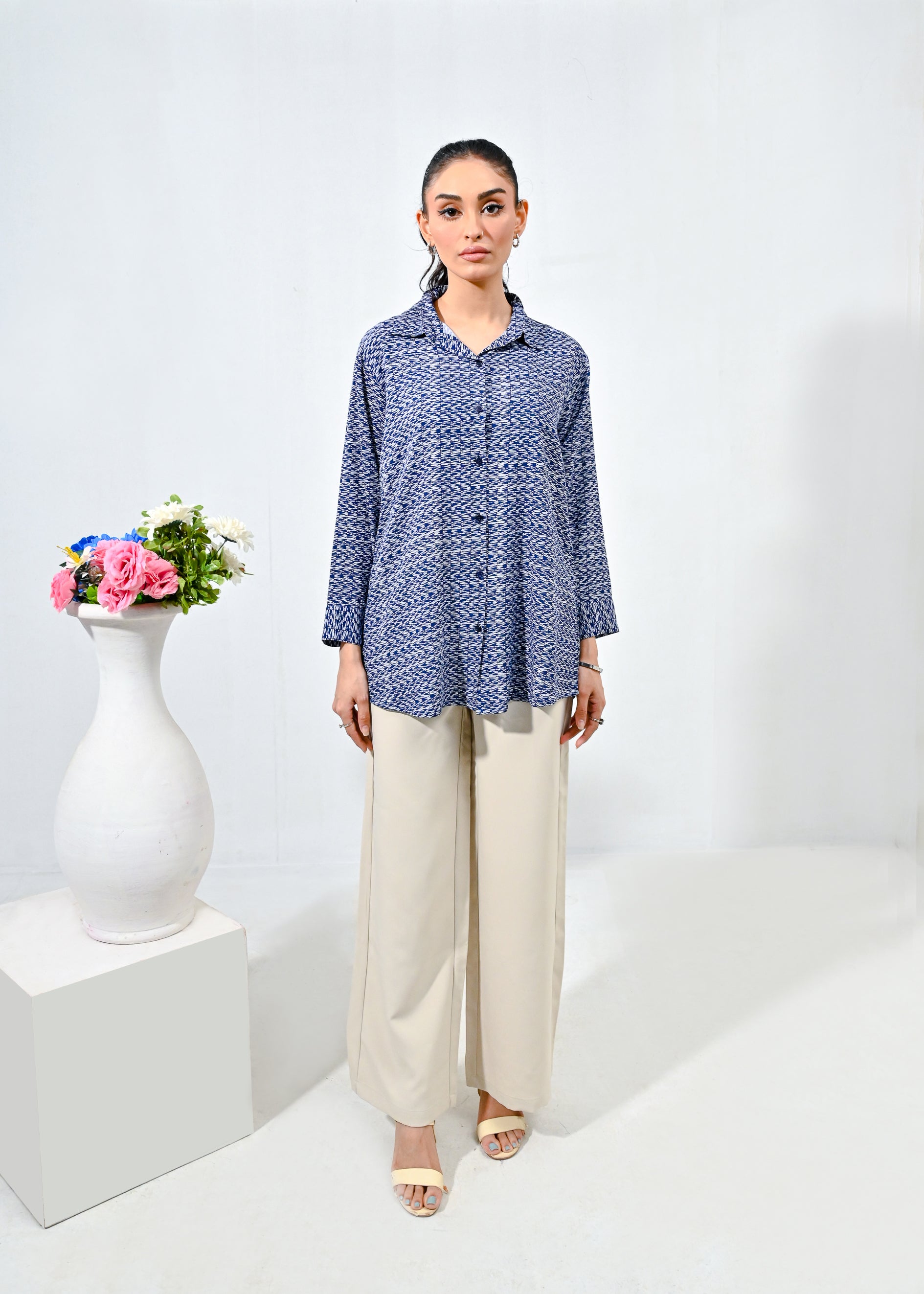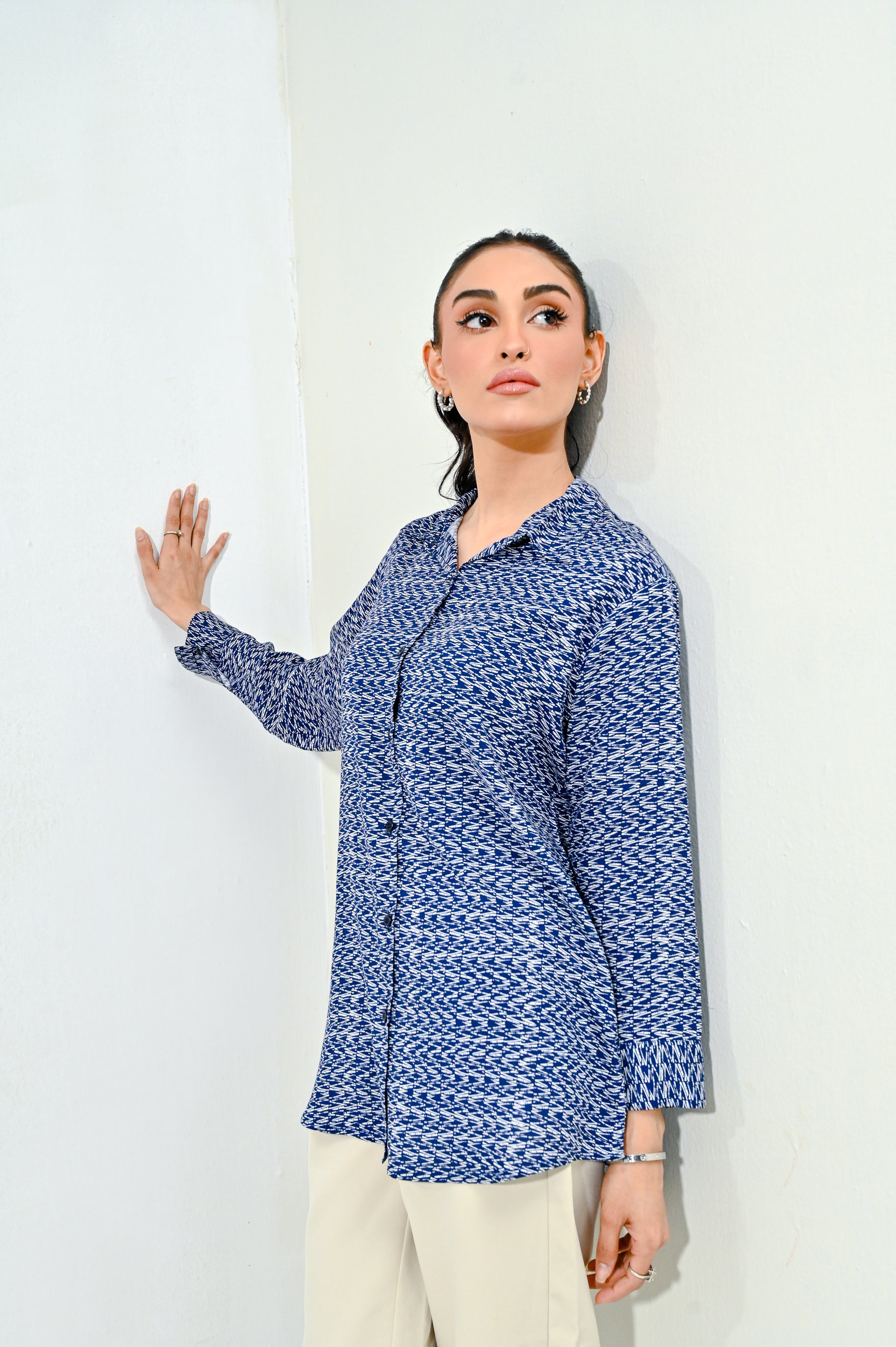 Step out in style with this charming blue patterned button-down linen top. Crafted from breathable linen, this top features an eye-catching pattern that adds a playful touch to your wardrobe. The relaxed fit ensures all-day comfort, while the button-down design allows for versatile styling--wear it tucked in for a polished look or open over a tank for a laid back vibe.