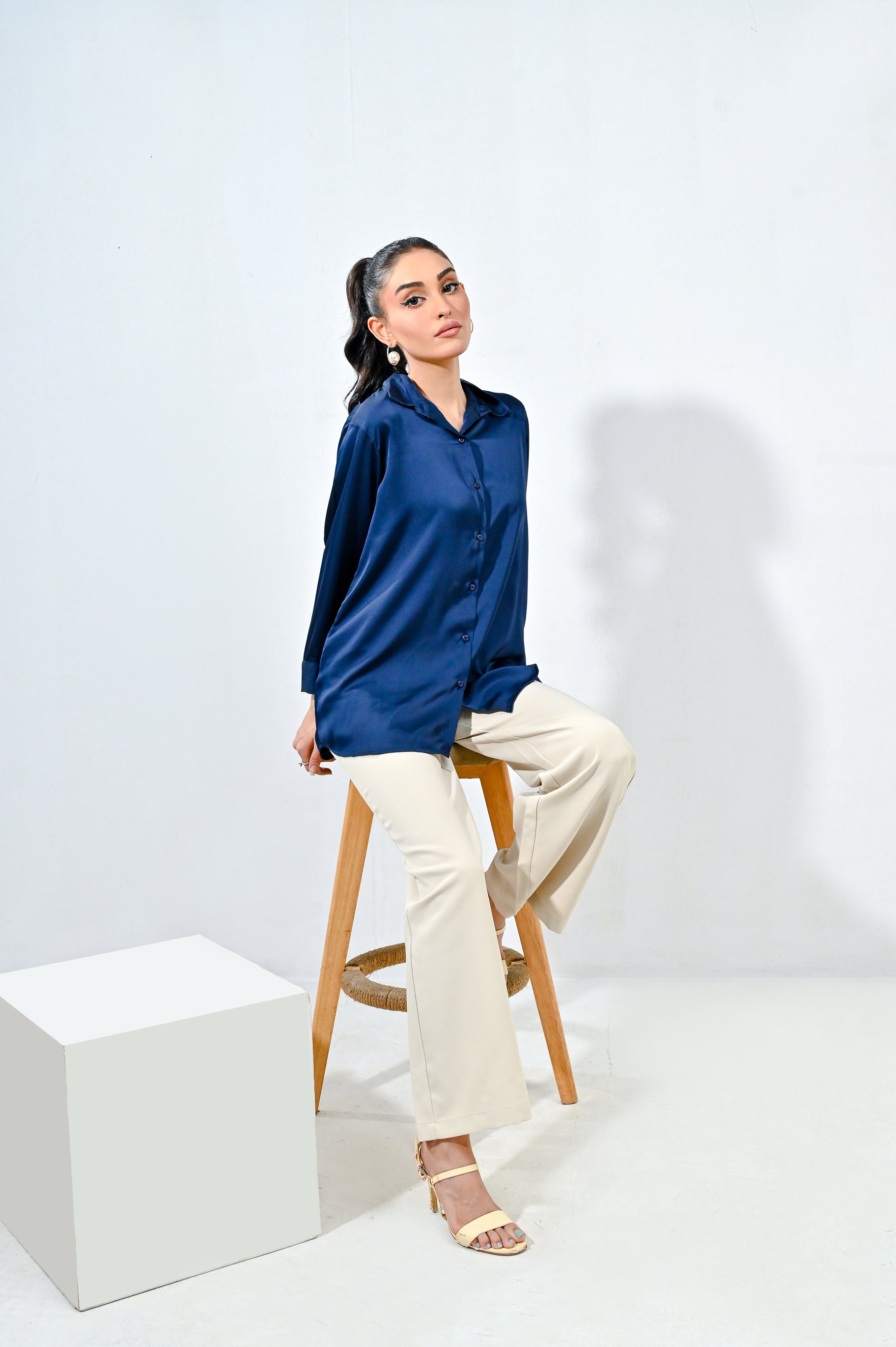 The rich blue color top exudes sophistication, while the smooth silk fabric offers a soft, luxurious feel against the skin. Featuring a relaxed fit and delicate draping, this top flatters every figure and adds an effortless elegance to any outfit. Embrace the timeless beauty of silk and make a statement wherever you go.