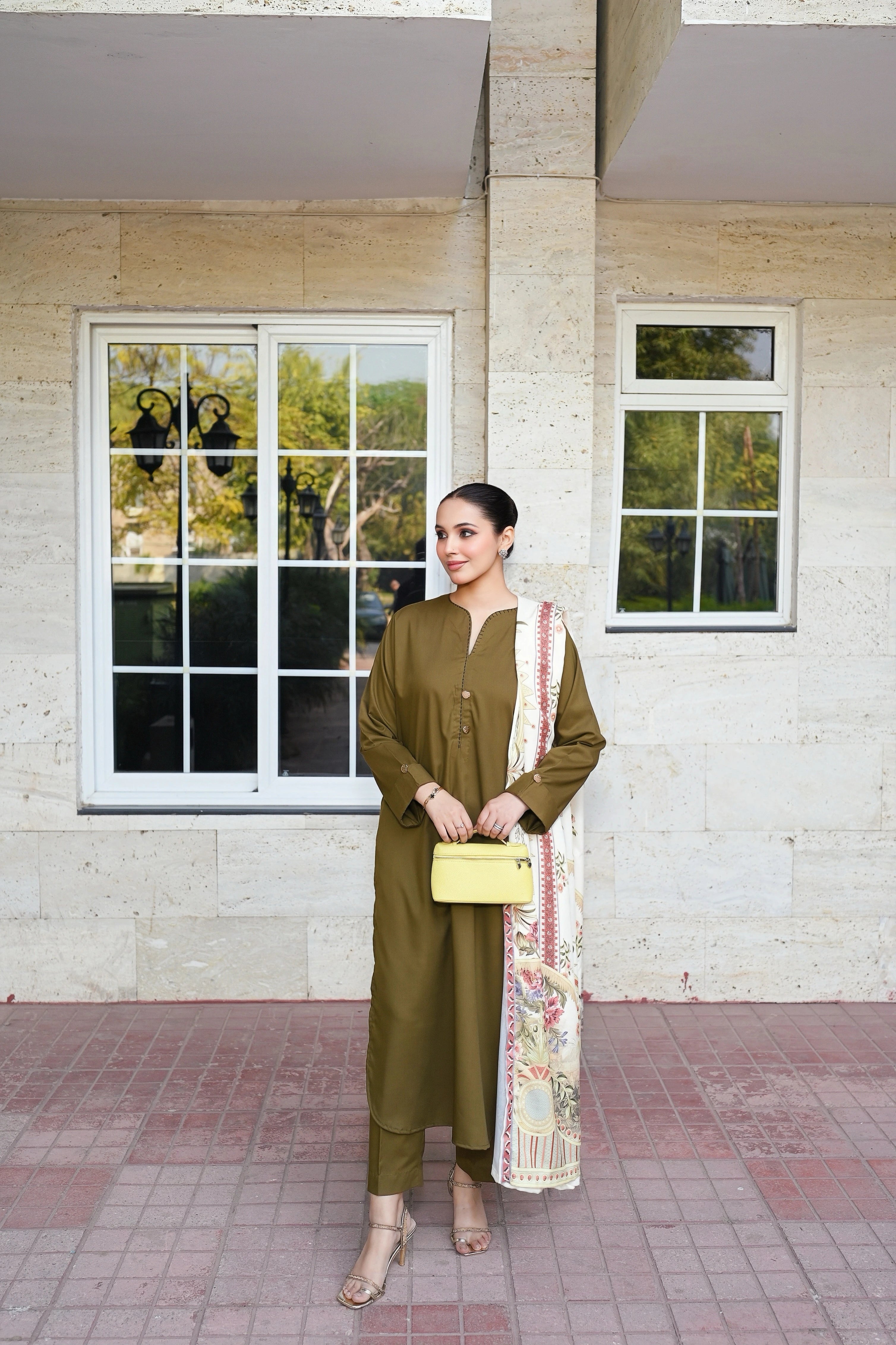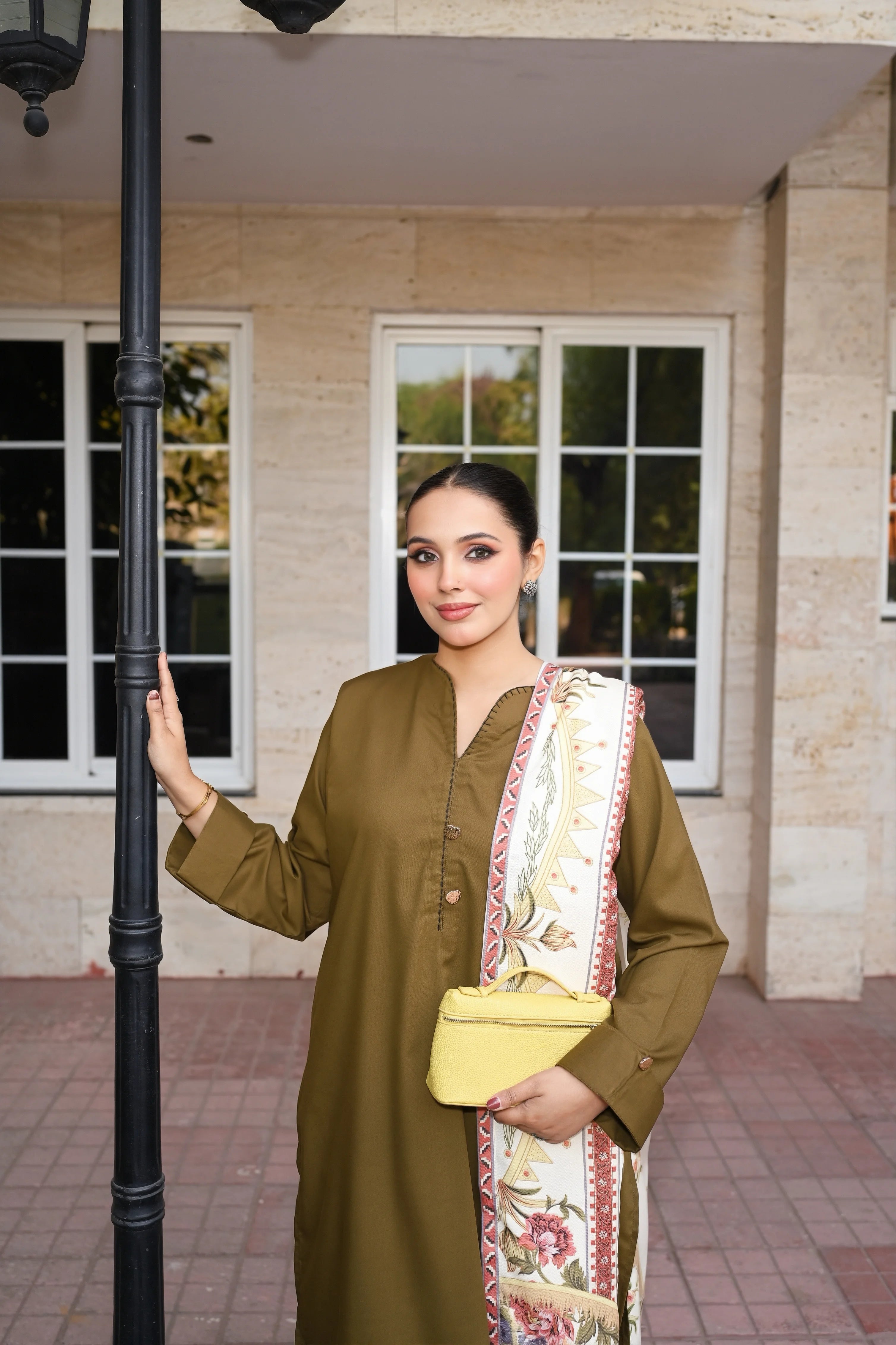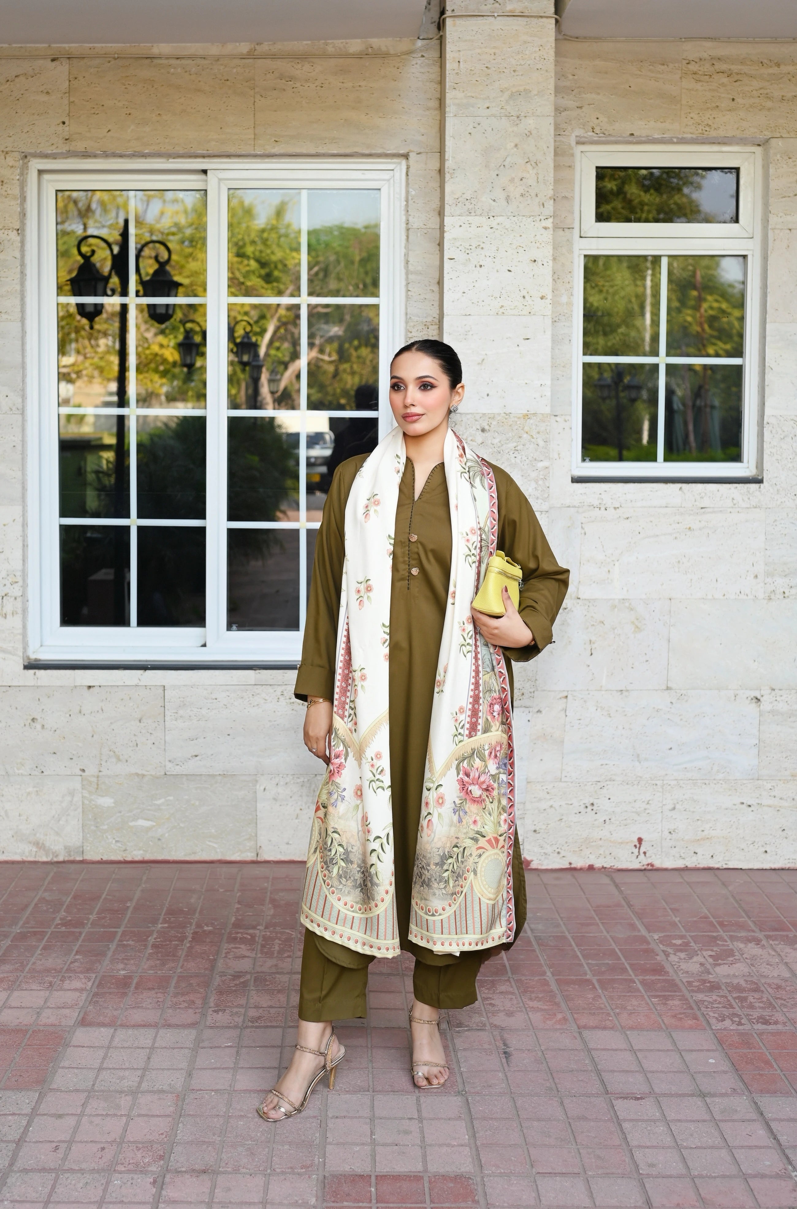 2pc – Solid set with long shirt and pants with option to add printed shawl