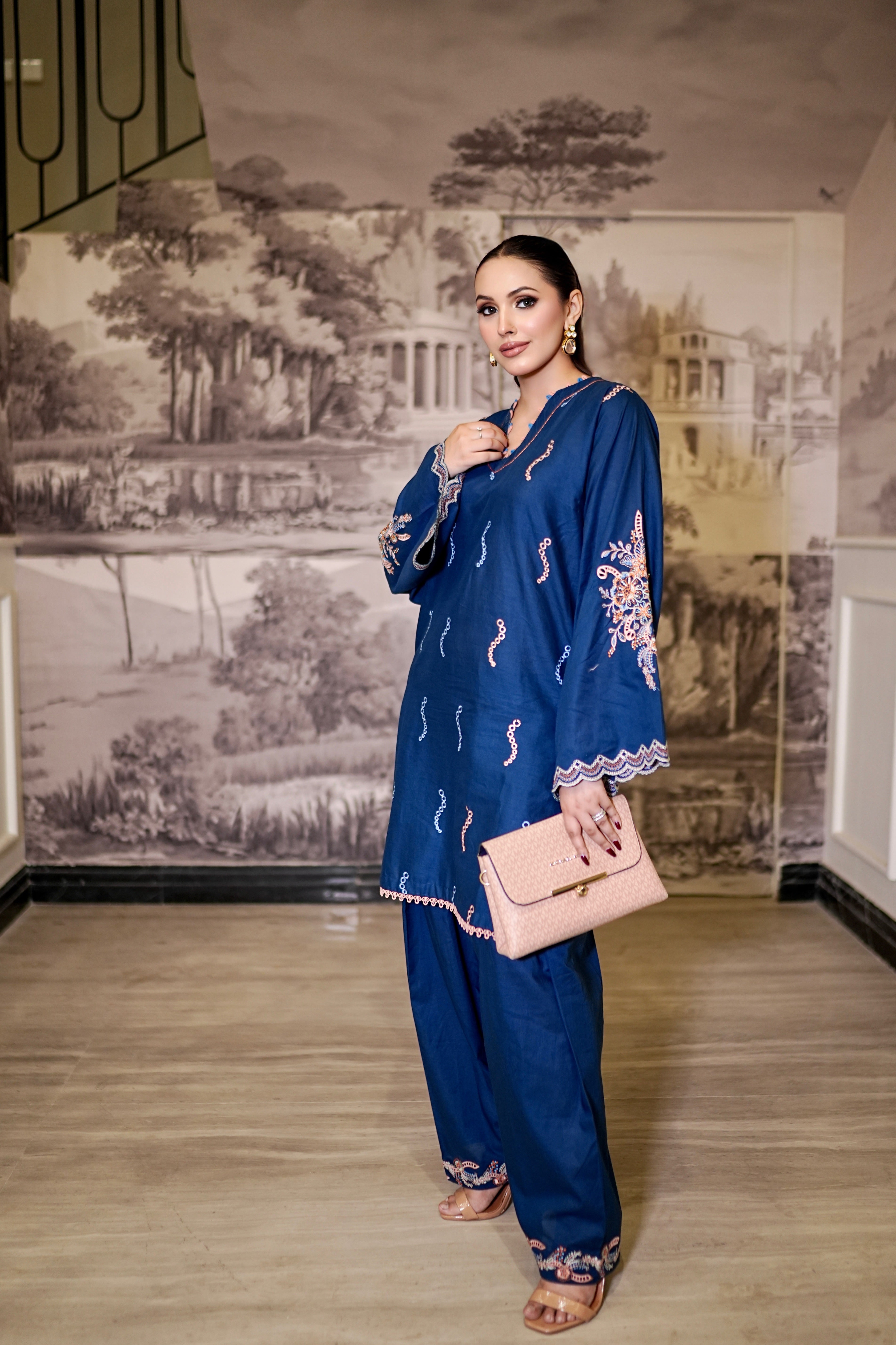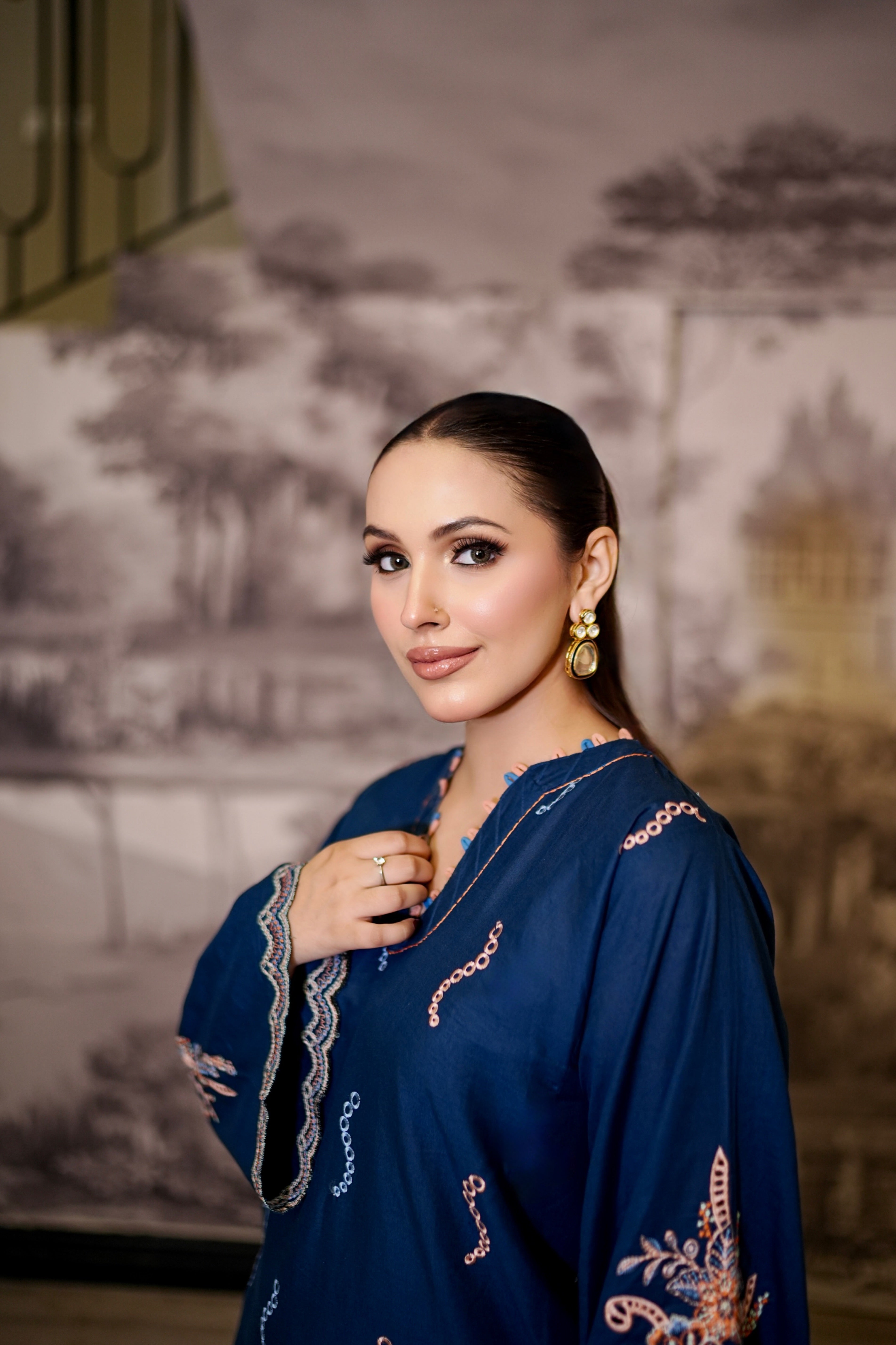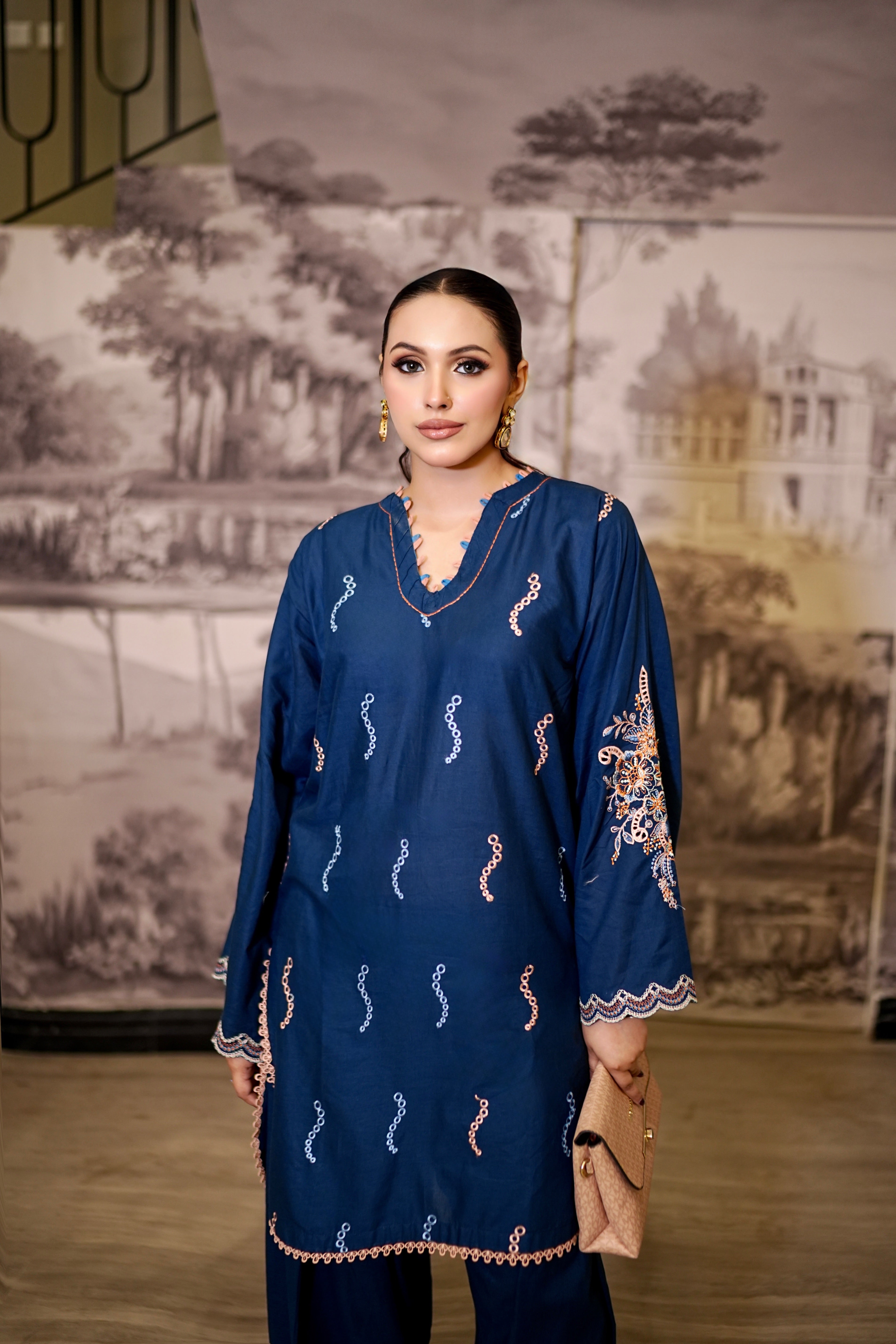 Inspired by the beauty of midnight skies, this rich blue 2-piece is crafted from premium cambric. Soft, breathable, and versatile, it carries subtle textures and elegant detailing. Midnight Veil is a timeless staple that whispers mystery and grace, making it perfect for both day and evening wear.