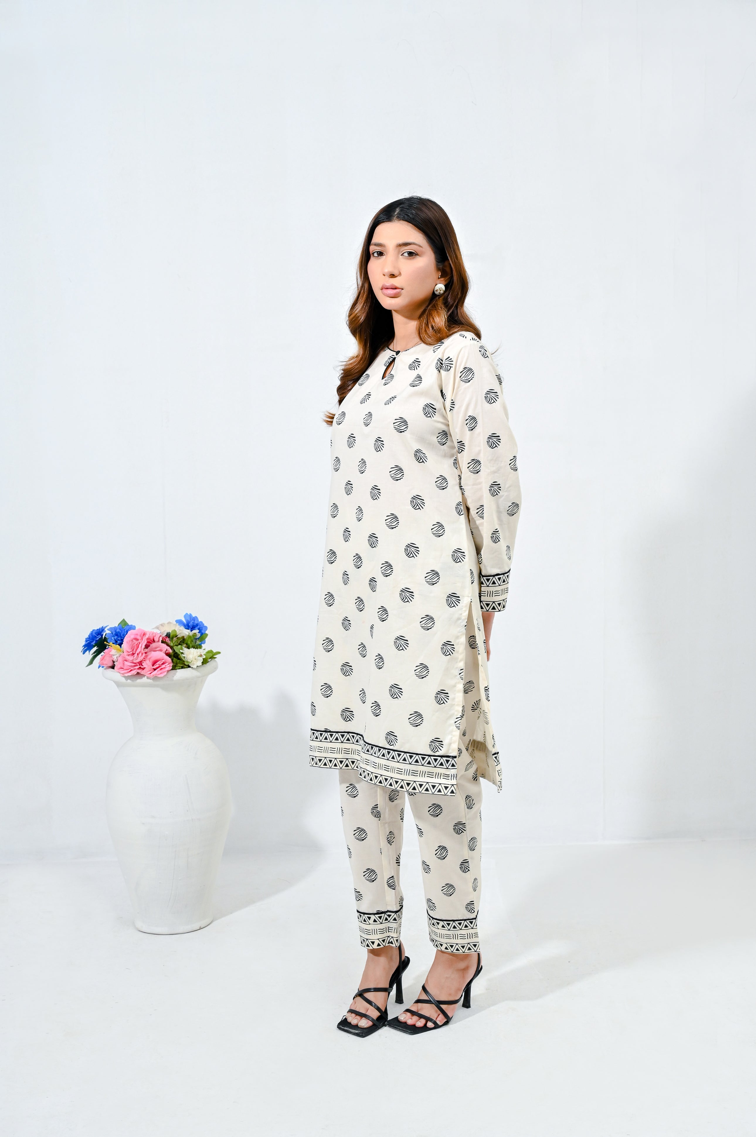 Embrace effortless chic with this stunning white cambric screen printed shirt and matching printed straight pants coord set. The shirt boasts delicate prints that add a touch of sophistication, while the straight pants offer a contemporary silhouette for a flattering fit. This versatile ensemble can be dressed up with heels or kept laid-back with flats.